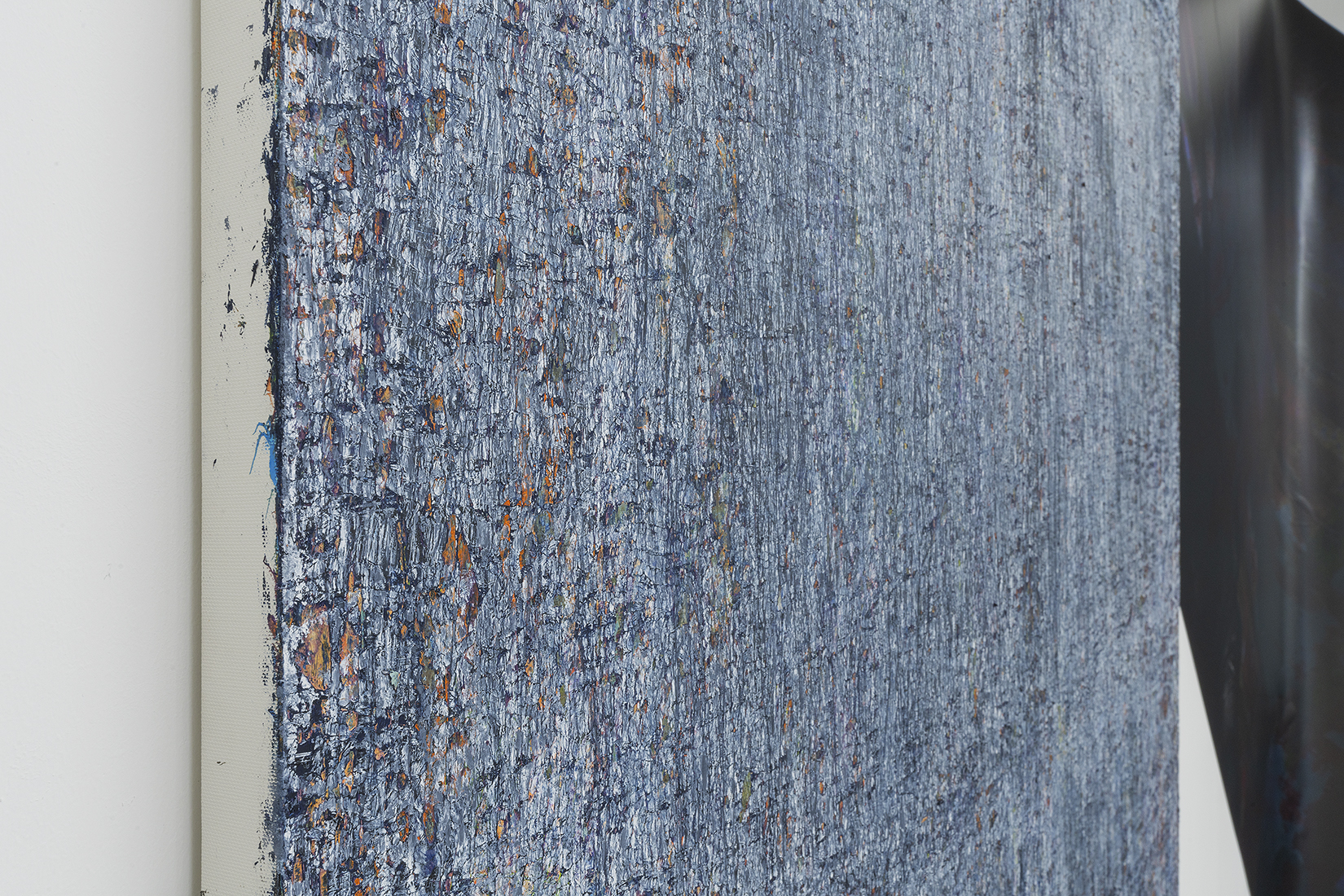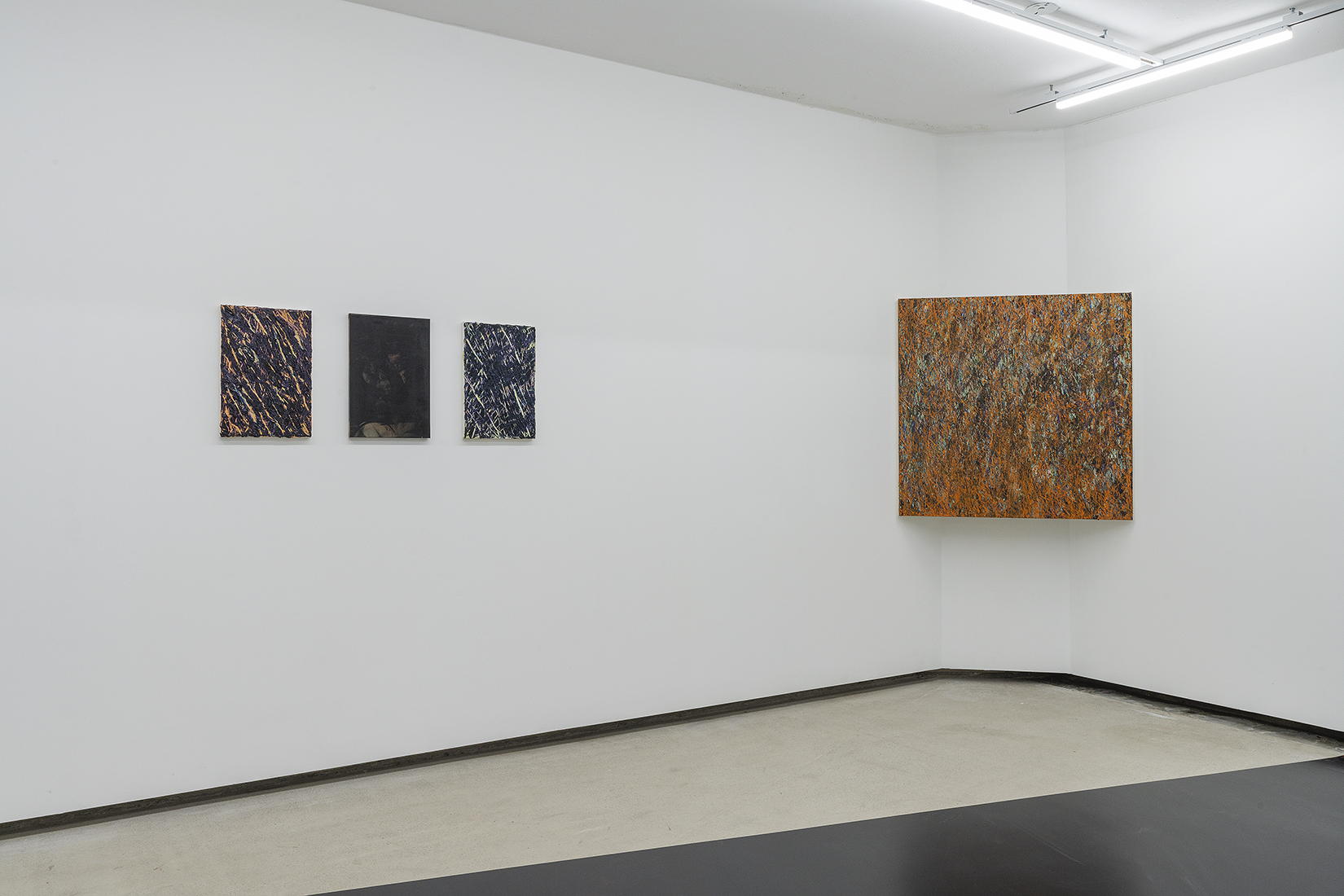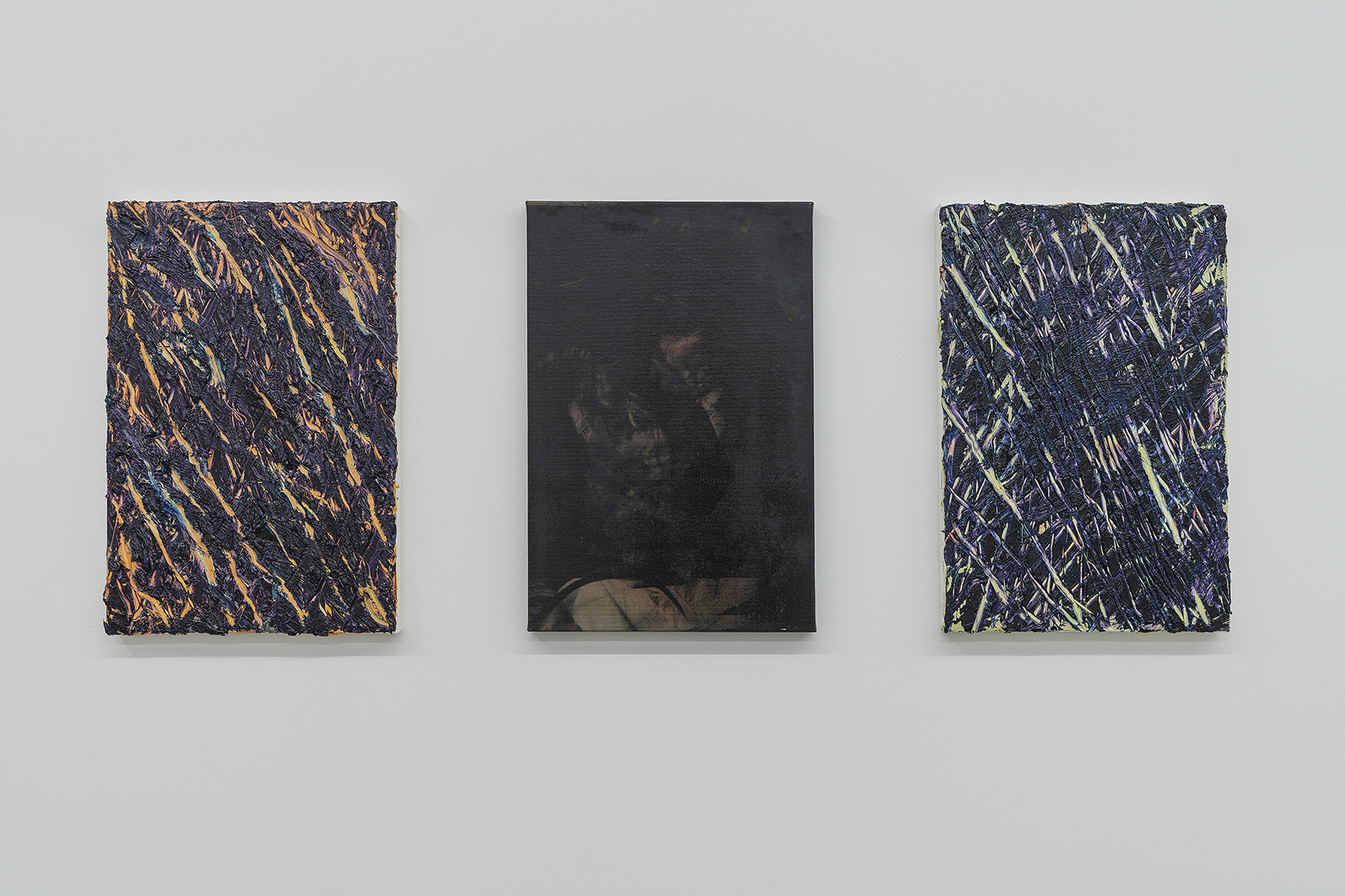 이러한 관심은 최근에 제작된 회화에서 더욱 강화된다. 그는 참조하는 이미지 없이 화면을 구성하고 그 위에 물감을 긁어낸 행위만을 누적하여 드러낸다. 그렇게 완성한 화면에는 작가의 신체성만이 보다 그득한 물질로 번역되어 남는다. 또한, 이번 신작에서는 과거의 네이밍과는 다른 방식으로 작품의 제목을 짓는다. 예를 들면 흰색을 뜻하는