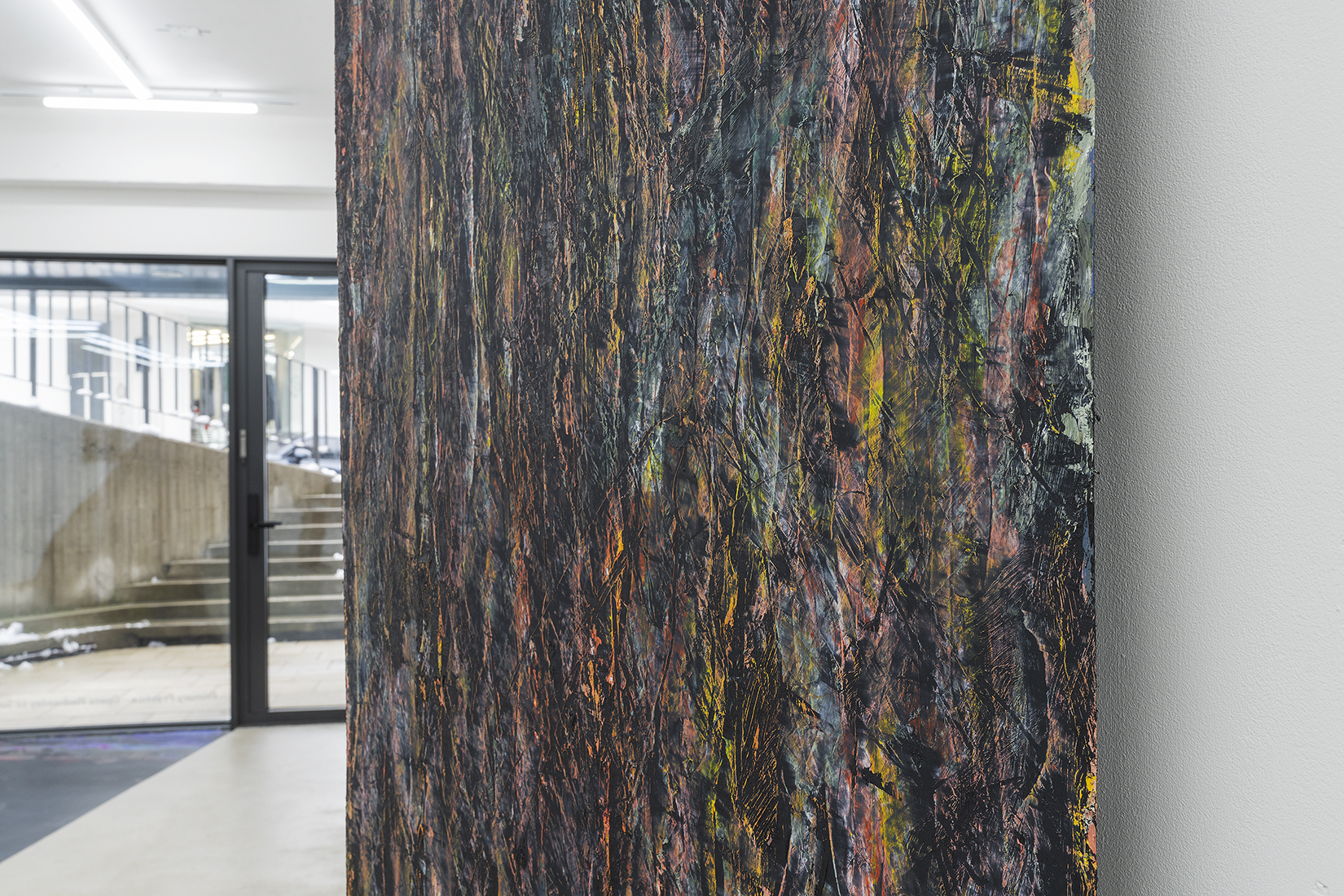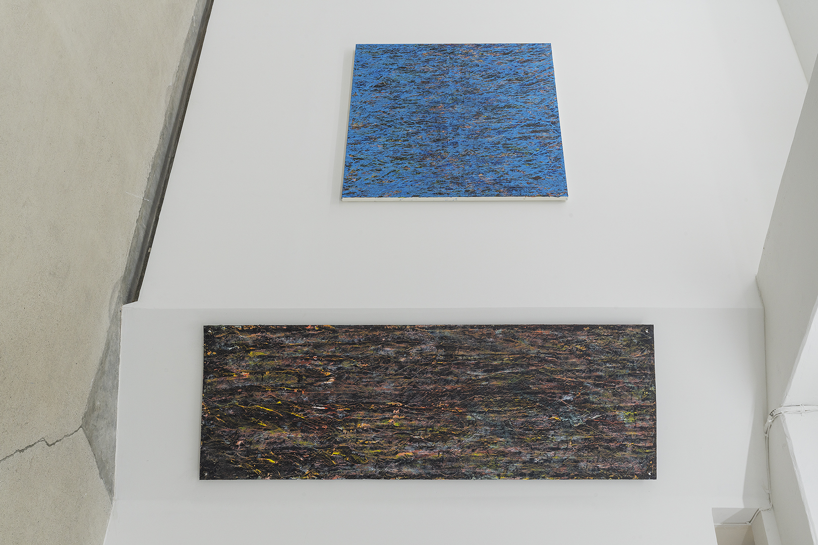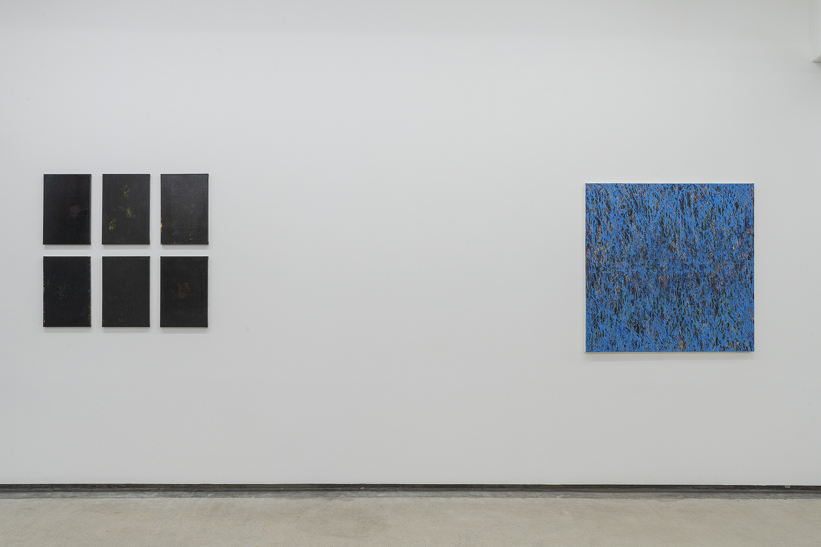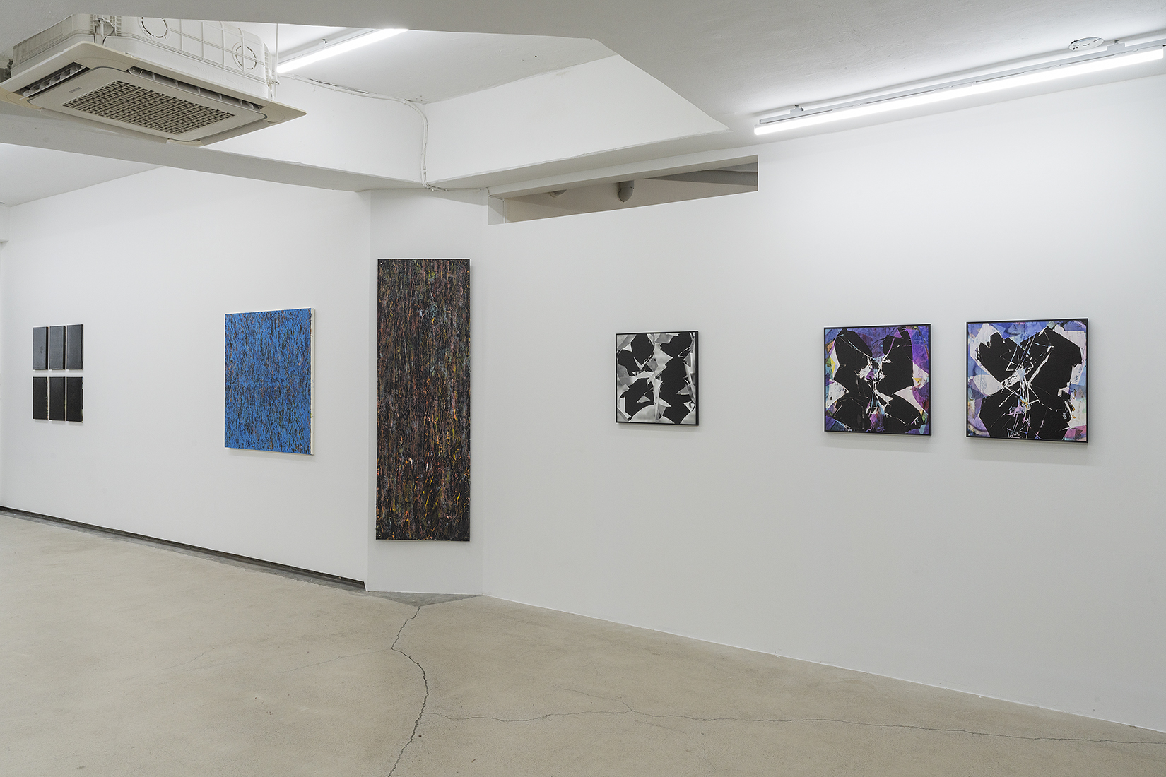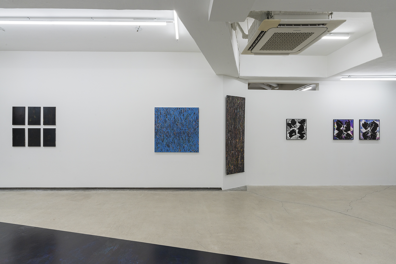 한편, 입구에서부터 바닥과 벽을 타고 쭉 늘어진 시트 작업은 ‘검은 사각형’의 두 번째 시리즈인 <2A> 작업을 모두 이어 붙여 재구성한 것이다.