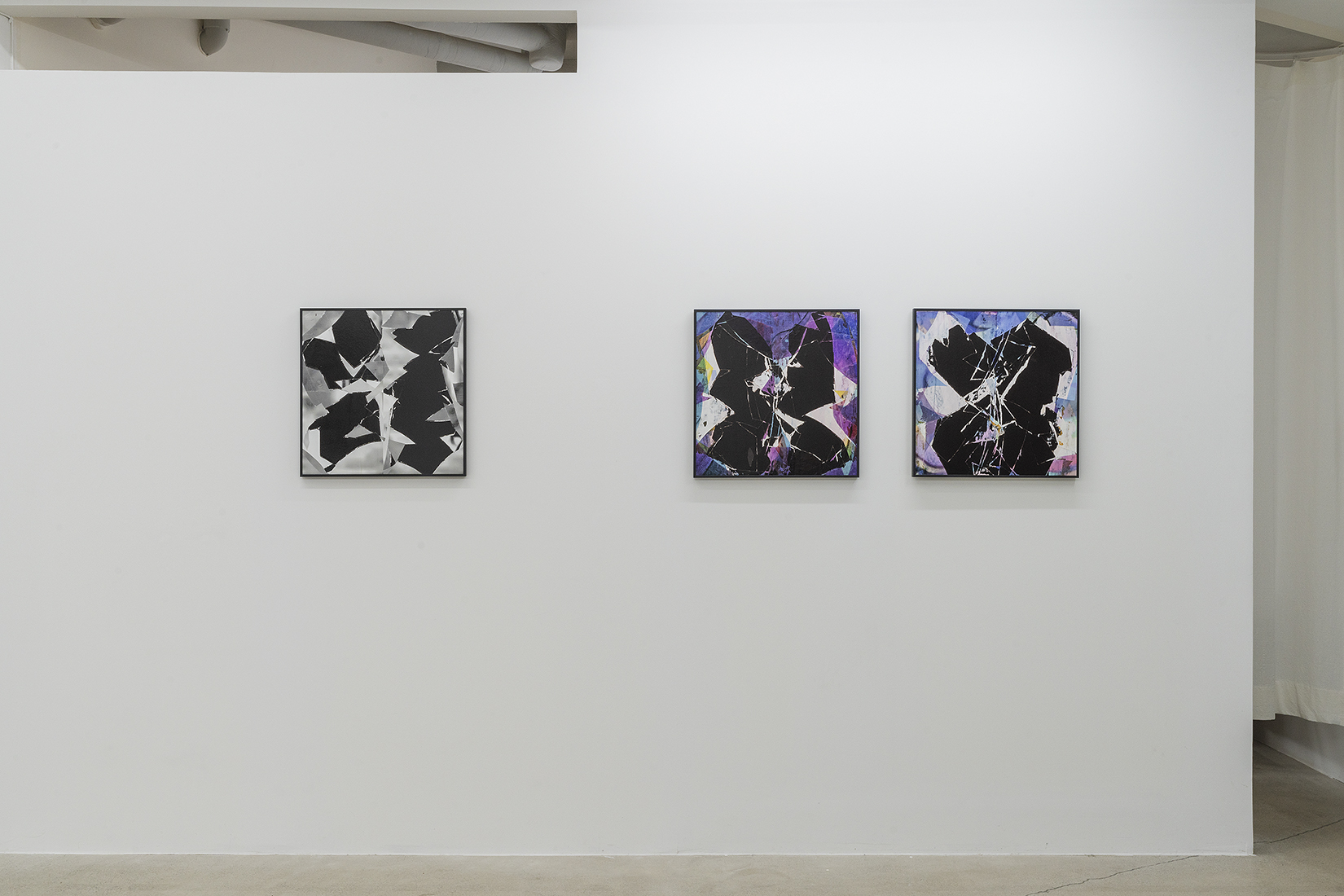 이승찬은 이런 가볍게 지나치는 이미지를 의미나 서사가 없는 일종의 로우 데이터와 같은 것으로 인식한다. 그는 여기에 고유의 알고리즘을 적용해 회화로서의 화면을 구축하며, 지난 역사에서 ‘검은 사각형’이 그랬듯, 시각 세계에서 주어진 것을 추상화하는 과정을 거친다. 문 옆에 설치된 6개의 화면은 작가의 초창기 ‘검은 사각형’ 연작의 일부로써, 화면 위에 로우 데이터라고 일컬을 수 있는 이미지를 반복적으로 출력하여 개별의 의미를 더욱 적극적으로 지워낸 후 완전한 ‘검은’ 사각형으로 완성한다. 그렇게